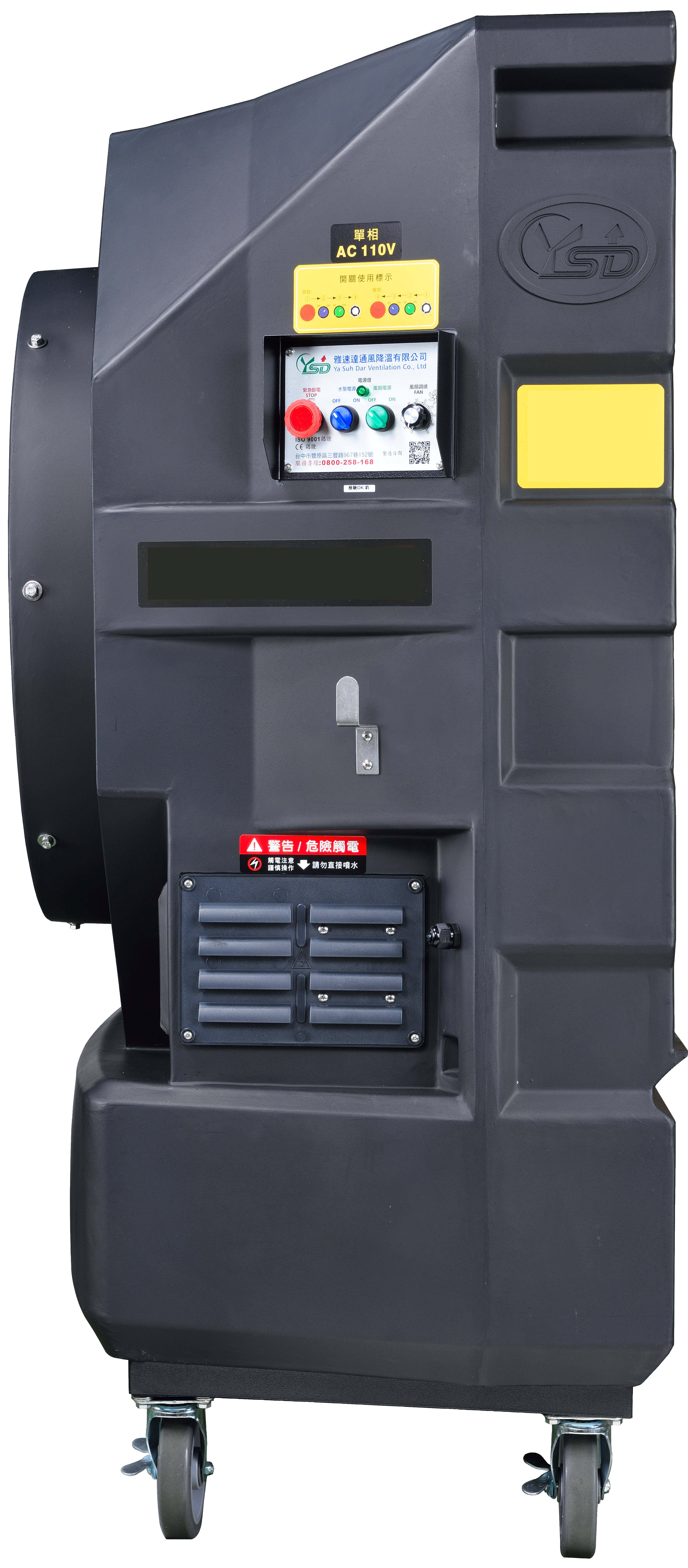 Ya Suh Dar M702-COOL Verdunstungskühler - leistungsstark und energiesparend Ya Suh Dar M702-COOL Verdunstungskühler ist ein energiesparender, mobiler, adiabatischer Luftkühler für den gewerblichen Einsatz. Das Plug & Play-Gerät sorgt für angenehme Temperaturen in Fabriken, Industrie- und Produktionsbereichen, Restaurants oder Hotels. Geeignet für Flächen bis 220 m² mit einer Luftumwälzung von 22.000 m³ / Stunde. Dieses Gerät eignet sich für die Kühlung von Innen- und Außenbereichen. Das übersichtliche Display macht die Bedienung des Geräts sehr einfach: Power: Ein- / Ausschalten & Not-Aus-Schalter Power of Pump: Ein- / Ausschalten der Pumpe Power of Fan: Ein- / Ausschalten des Lüfters. Der starke Luftstrom hat eine Reichweite von über 15 m. Fan Speed Regulator: Reguliert die Lüftergeschwindigkeit und ist stufenlos einstellbar Ein adiabatischer Kühler (Verdunstungskühler) kühlt die Umgebungsluft mithilfe von Wasser. Bei diesem Prozess wird die angesaugte Luft durch ein mit Wasser aus dem Reservoir befeuchtetes Pad geleitet und anschließend wird die Luft durch Verdunstung gekühlt. Ein Verdunstungskühler sorgt jedoch nicht nur für eine Kühlung der Raumluft, sondern filtert mithilfe des Wasserkreislaufs auch Staub und Schmutz aus der Luft. Dieser Vorgang ist energiesparend und sehr umweltfreundlich. Mithilfe des mitgelieferten Schlauchs kann das Gerät direkt an die Wasserversorgung angeschlossen werden, wodurch ein automatisches Befüllen des Wassertanks ermöglicht wird. Tipp vom Hersteller: Eiswürfel (Wasserkühlpad) im Tank können den Kühleffekt verstärken. Das Fassungsvermögen des Wassertanks beträgt 145 Liter. Ya Suh Dar Verdunstungskühler lässt sich einfach reinigen und warten. Dank der arretierbaren Rollen lässt sich der adiabatische Luftkühler einfach transportieren und an jedem beliebigen Ort aufstellen und in Betrieb nehmen. Der Wasserzulaufschlauch und das Stromkabel können an den Halterungen an den Seiten des Geräts befestigt und somit sicher aufbewahrt werden. Merkmale Bereiche bis 220 m² Luftumwälzung von 22.000 m³ / Stunde Luftströmungsreichweite: 15 Meter Plug & Play Übersichtliches Display Ein/Aus-Schalter für die Pumpe Ein-Aus-Schalter für das Gebläse Einstellbare Ventilatorgeschwindigkeit Wasserkühlpad Trockenlaufschutz Stabiles und hochwertiges Polyethylen-Gehäuse Halterung zur Bewahrung des Wasserzulaufschlauches und des Stromkabels Mobil und einfach zu transportieren: Rollen mit Bremsen Made in Taiwan und mit ICO, CE und anderen Zertifikaten ausgezeichnet